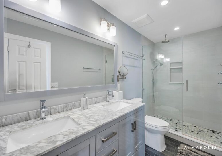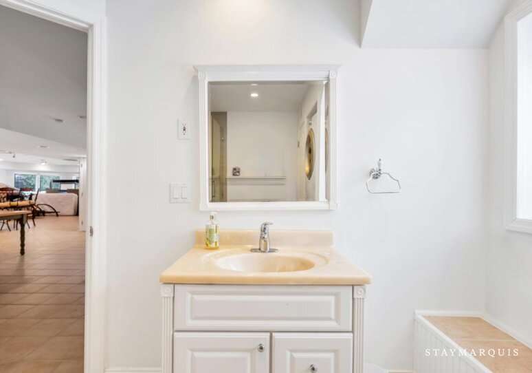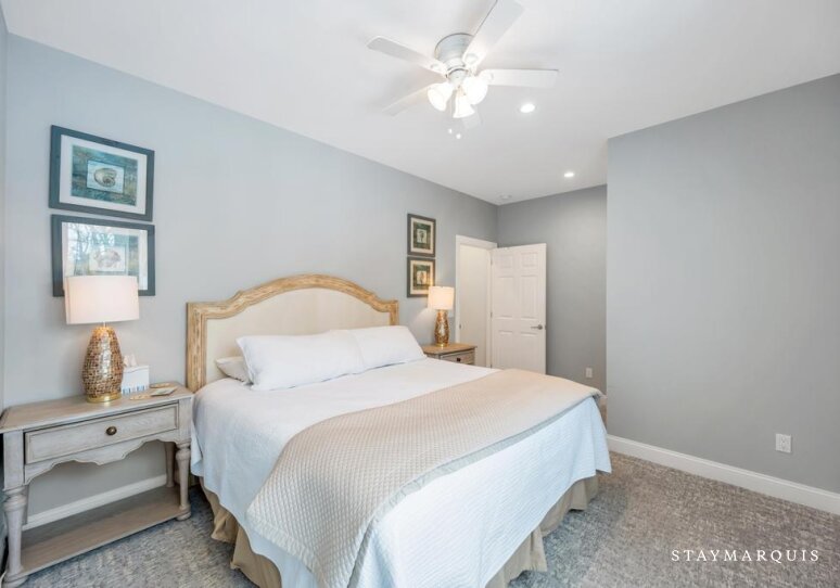 Each of the six bedrooms is designed as a peaceful sanctuary, offering a calm and comfortable place to rest at the end of the day. Fresh, high-quality linens, plush bedding, and thoughtfully selected furnishings create a hotel-level sleep experience, while ample storage allows guests to unpack and relax. With five and a half beautifully appointed bathrooms, mornings are easy and unhurried, even with a full house. The bathrooms feature clean, modern finishes and are stocked with all the essentials guests may need throughout their stay, from soft towels to everyday necessities. A travel crib is available for families with young children, ensuring the home is welcoming and accommodating for guests of all ages.