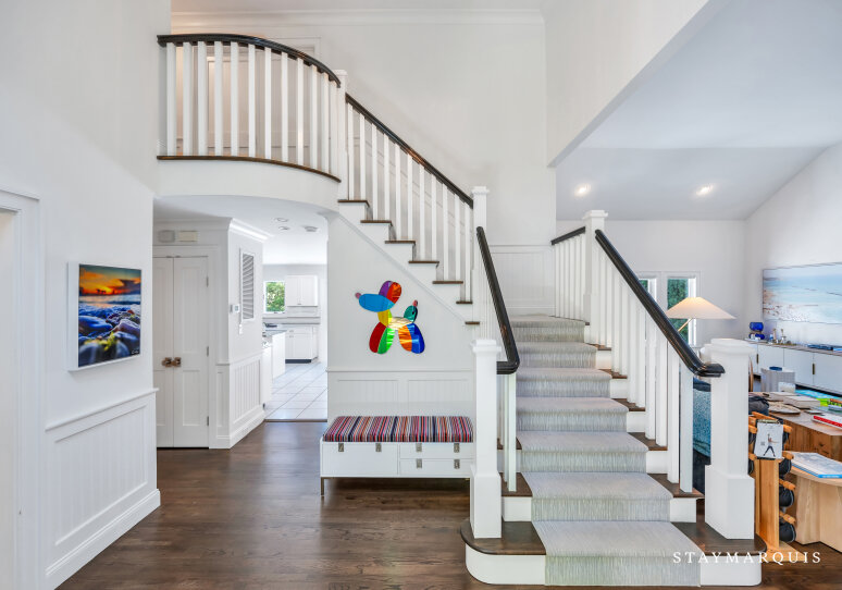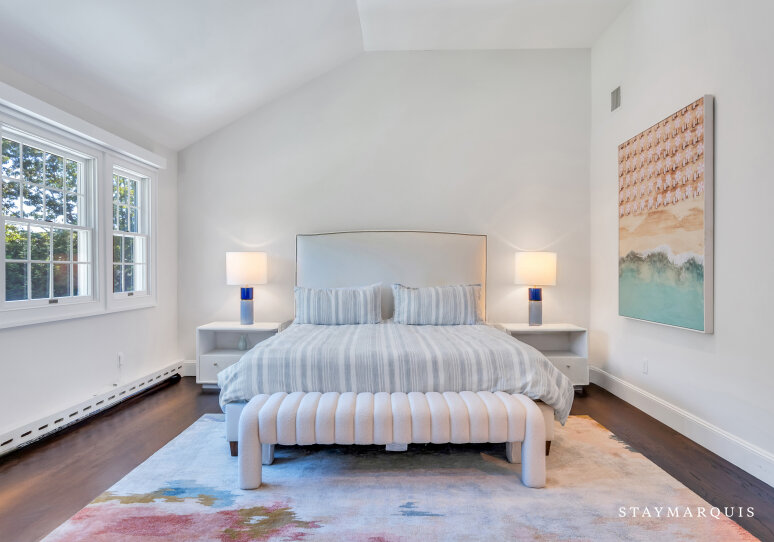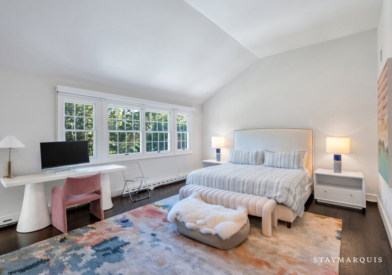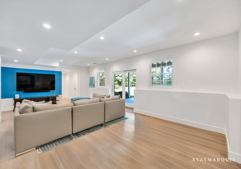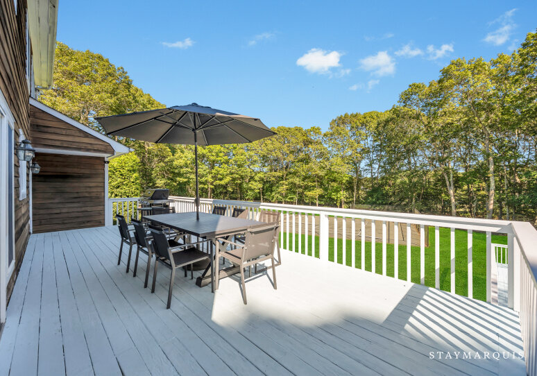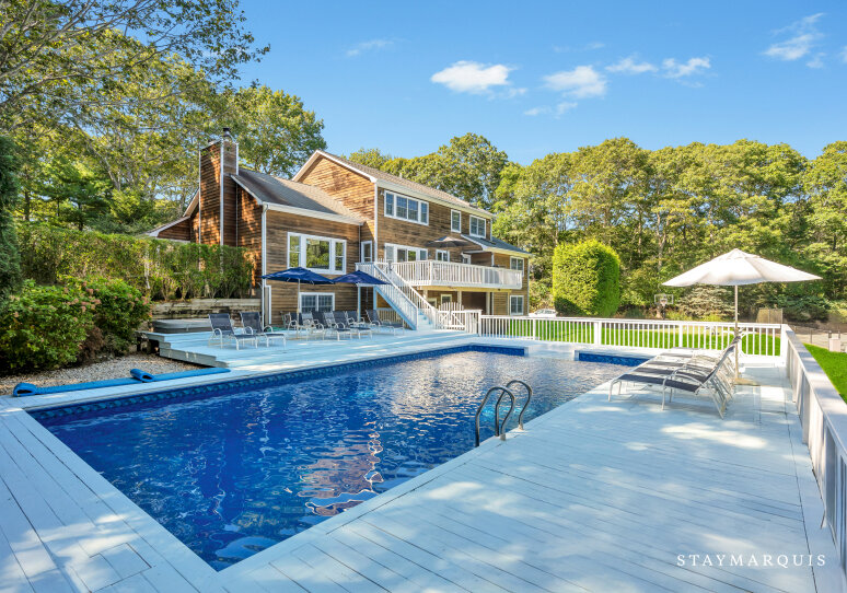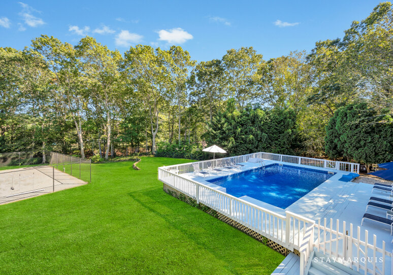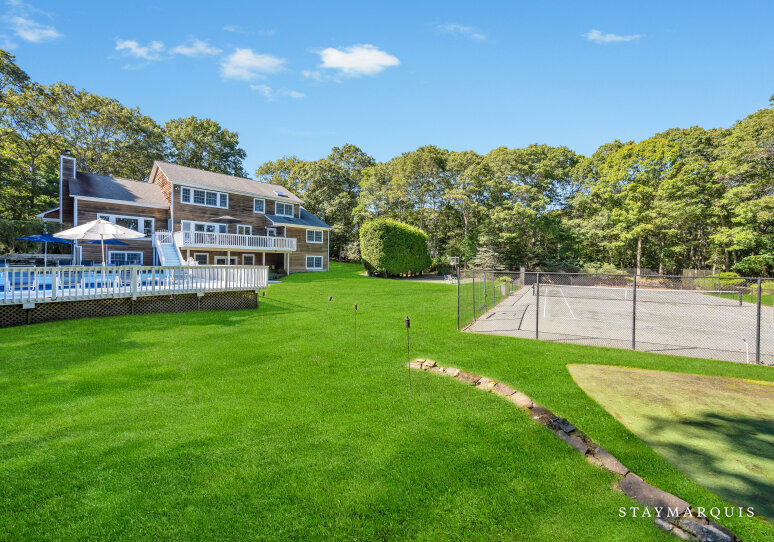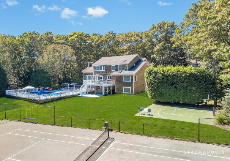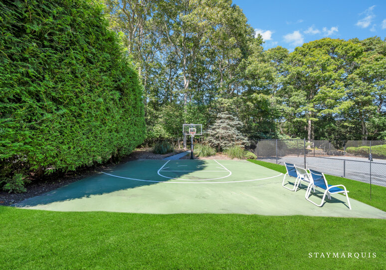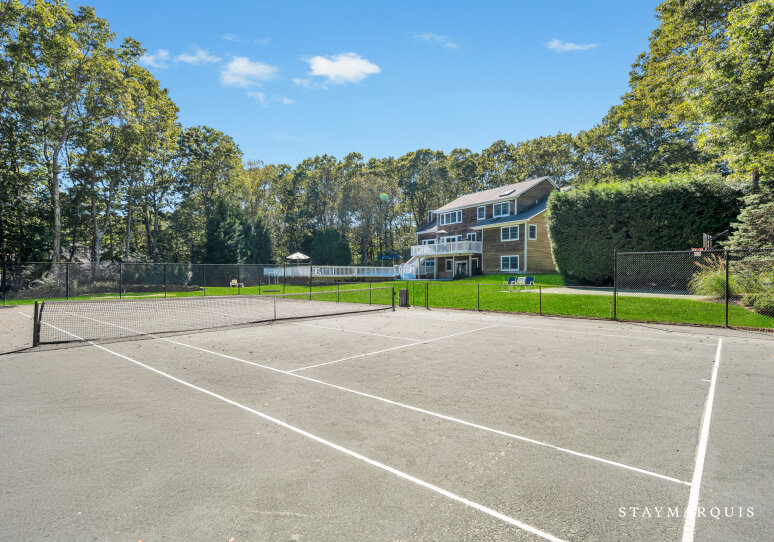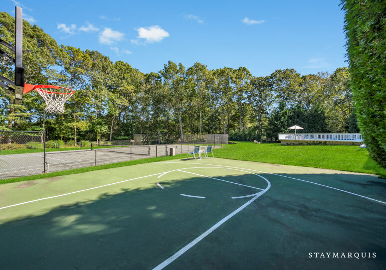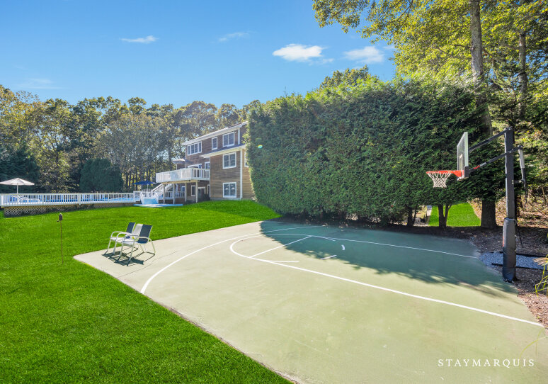 House updated a few years ago with a major renovation. It included several bathrooms, flooring, window, baseboard and crown moldings, staircase etc. The house is 5,000 square feet: 7 bedrooms, 4.5 bathrooms on 1.7 acres of private manicured landscaping. Tennis Court (har-tru), Heated Pool, Hot Tub, Stainless/Granite Kitchen, Basketball Court (30 x 30), 2,800 Sq ft of decking, BBQ, 4 large Flat Panel Televisions (smart tv's), sonos wireless music system. Located in a private sub-division, close to the beach and the Village of Southampton.