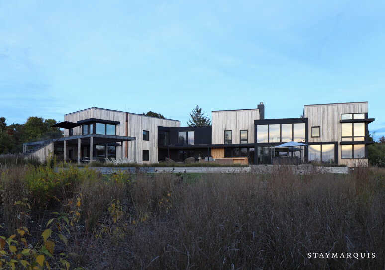 6BR/5BA: Sophisticated, modern waterfront retreat, private heated pool, private dock, gym, spacious interiors, a wood-burning fireplace, gas grill, outdoor shower, and bicycles