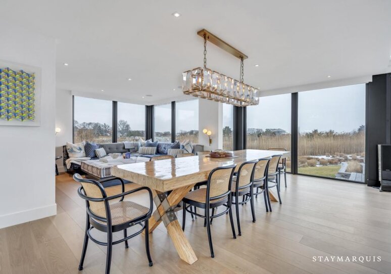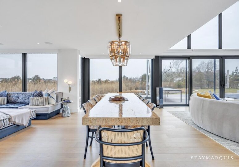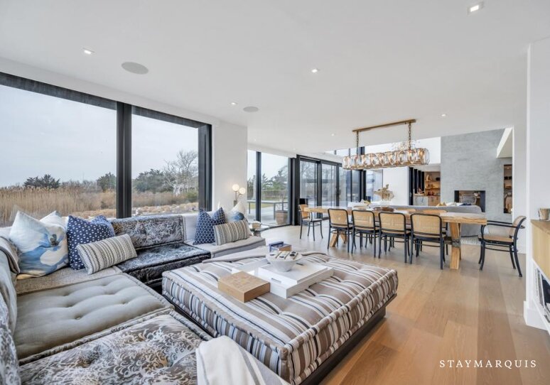 Set along the water on a quiet and private stretch of Southampton, this sophisticated modern retreat offers an elevated yet welcoming escape designed for memorable gatherings. With six bedrooms, four full and 2 half bathrooms, the home comfortably accommodates groups and families seeking space, privacy, and refined coastal living. The open floorplan is light-filled and expansive, with thoughtfully designed interiors that invite guests to relax, reconnect, and settle into the calm rhythm of waterfront life. Multiple sitting and dining areas create an effortless flow throughout the home, making it easy to gather together or enjoy quiet moments apart. This is a setting created for unwinding from daily demands while embracing the elegance and ease of the Hamptons.