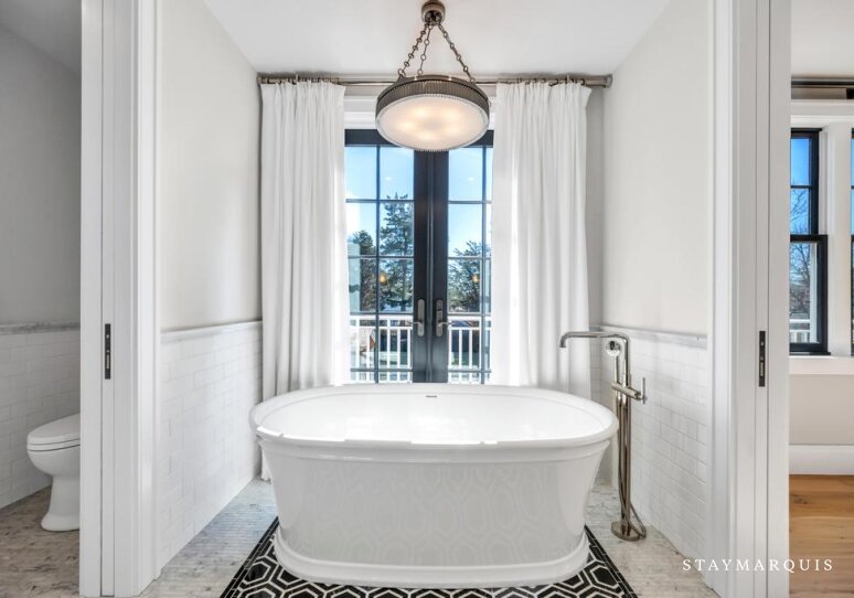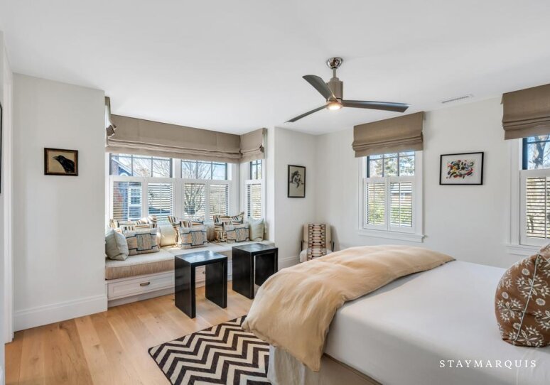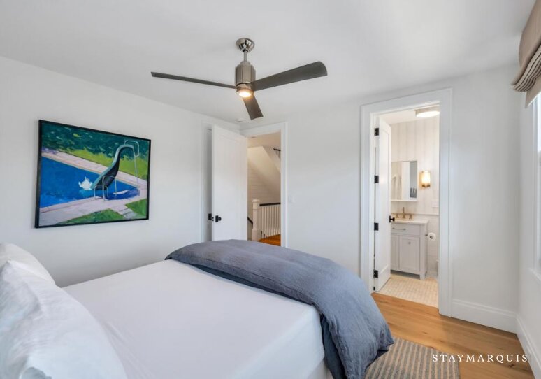 The six bedrooms serve as peaceful retreats where guests can relax and recharge after full days of seaside adventures. Each bedroom is thoughtfully designed with plush bedding, fresh linens, and calming décor that reflects the understated elegance of the Hamptons. The primary suite offers additional privacy and generous space, creating a restful sanctuary at the end of the day. Additional guest bedrooms provide comfortable accommodations for family members and friends, while the abundance of bathrooms ensures everyone enjoys both comfort and convenience. The seven and a half bathrooms feature modern fixtures, soft towels, and all the essentials needed for a seamless and relaxing stay.