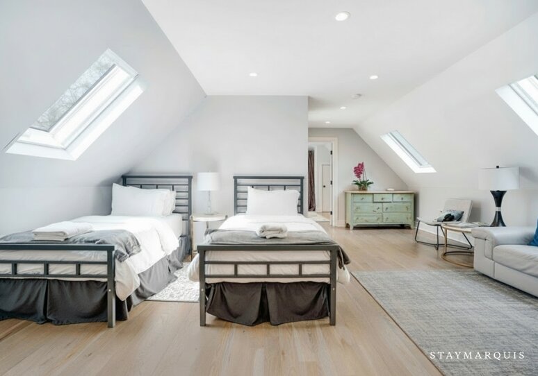 - Access to BR 1 (upstairs guest room) is through the additional sleeping space with two twin beds